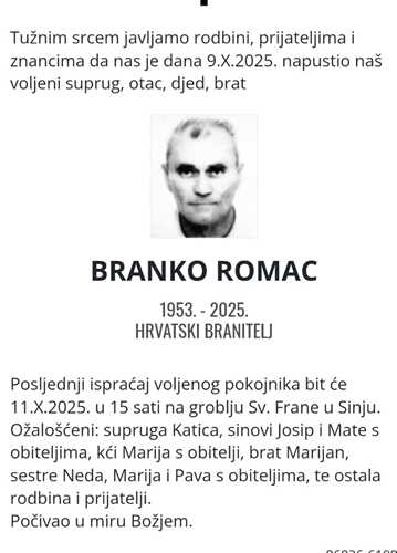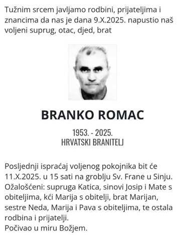 BRANKO ROMAC 1953. – 2025. HRVATSKI BRANITELJ