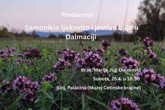 Udruga Terra Nova poziva sve zainteresirane na javno predavanje „Samoniklo ljekovito i jestivo bilje u Dalmaciji“, koje će se održati u Sinju, u dvorani Palacina (Muzej Cetinske krajine), u subotu 25. travnja s početkom u 10:30 sati. Ulaz na predavanje je slobodan.