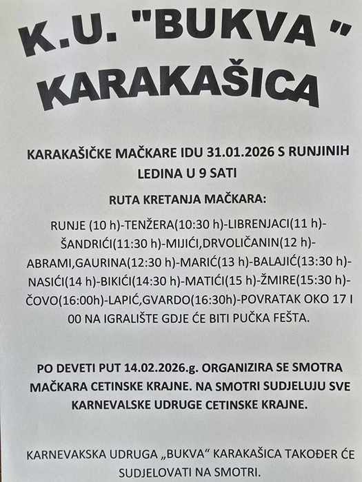 Karakašičke mačkare kreću 31. siječnja s Runjinih ledina u 9 sati