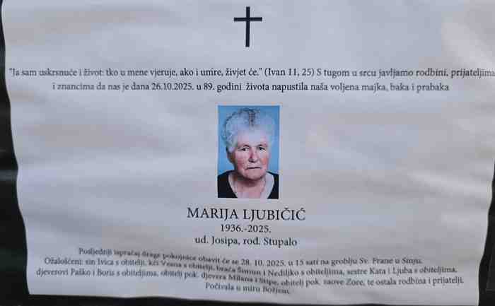 MARIJA LJUBIČIĆ ud. Josipa, rođ, Stupalo 1936 – 2025