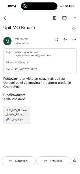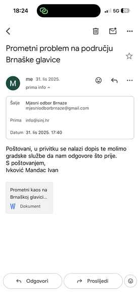 Mjesec dana tražimo termin za sastanak. Mjesec dana nas zavlačite. Telefoni gradskih službi šute. Službeni mobiteli se ne javljaju. Na e-mailove nema odgovora. Mjesni odbor Brnaze i mještani za vas očito ne postoje.