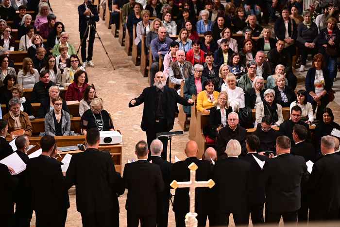 Publika je tako mogla uživati u skladbama Terra tremuit i Jadranu Jakova Gotovca, iz Muke (završni zbor) Borisa Papandopula, Oče naš i Dalmatino povišću pritrujena Ljube Stipišića, Ave Maria Franz Biebla te Zdravo Marijo, Sliku tvoju ljubit ću i Kantatu Gospe Sinjska iz djela Zlato Gospine milosti Vlade Sunka.