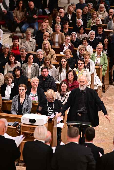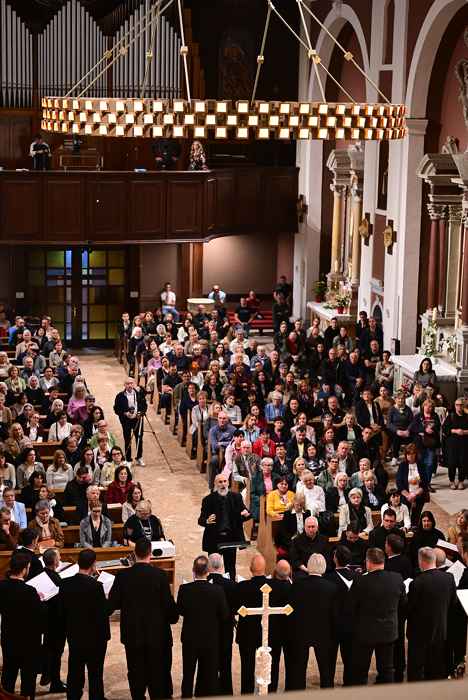 Publika je tako mogla uživati u skladbama Terra tremuit i Jadranu Jakova Gotovca, iz Muke (završni zbor) Borisa Papandopula, Oče naš i Dalmatino povišću pritrujena Ljube Stipišića, Ave Maria Franz Biebla te Zdravo Marijo, Sliku tvoju ljubit ću i Kantatu Gospe Sinjska iz djela Zlato Gospine milosti Vlade Sunka.
