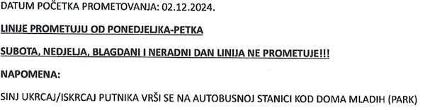 Gradonačelnik Grada Sinja Mira Bulja s odabranim prijevoznikom LONE d.o.o. donio je odluku o komunalnim voznim linijama na području Grada Sinja, a koja se počinje provoditi od ponedjeljka, 2.12.2024. godine.