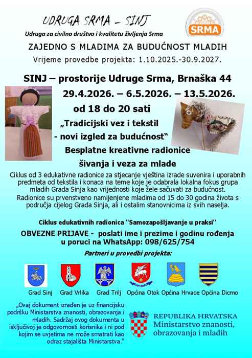 Udruga Srma nastavlja provoditi projekt “Zajedno s mladima za budućnost mladih”.