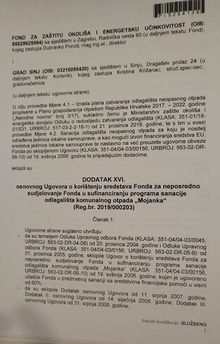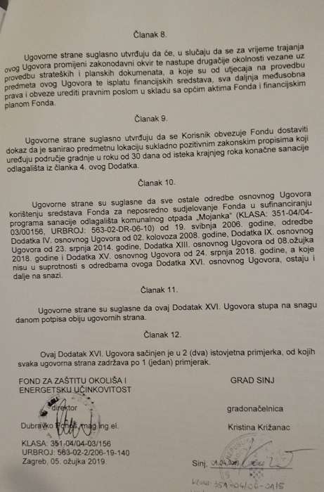 Štetni Ugovor o dovoženju otpada iz cijele županije i šire na odlagalište Mojanka potpisala je gradonačelnica NL Jadrijević, Kristina Križanac, a tadašnji pročelnik Grada NL Jadrijević je bio Igor Vidalina. (Priložena kopija Ugovora potpisanog na dan 5. 3. 2019. , članak 3.)