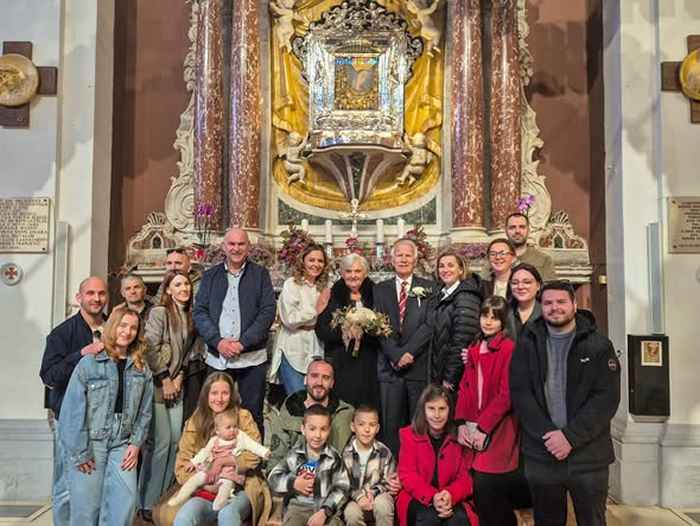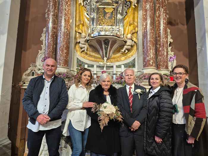U bazilici Čudotvorne Gospe Sinjske u subotu 28. 2. 2026., supružnici Petar i Nevenka Pletikosić djev. Ivković, proslavili su Dijamantni pir – 60. godina ženidbe.