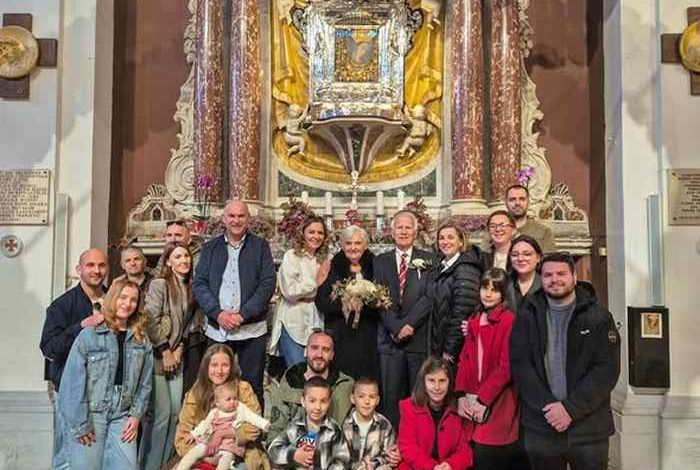 U bazilici Čudotvorne Gospe Sinjske u subotu 28. 2. 2026., supružnici Petar i Nevenka Pletikosić djev. Ivković, proslavili su Dijamantni pir – 60. godina ženidbe.