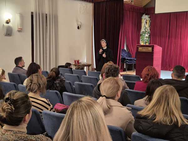 U Dvorani Gospe Sinjske okupili su se roditelji kandidata za sakrament Prve svete pričesti. Na susretu uz roditelji sudjelovali su župnik fra Antonio Mravak i kateheta s. Jelena Mijić.
