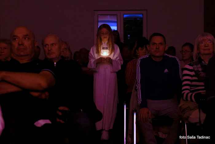 Nakon dramskog uvoda, u tami dvorane uz upaljene svijeće, uslijedilo je bolno i emotivno svjedočanstvo Sandra Rapčak Škomrlj, rođene vukovarke, koja je sa svojom obitelji zarobljena u Sotinu, a potom u logor u Negoslavcima. Tada djevojčica, prisustvovala je silovanju vlastite majke pod prijetnjom da će ju ubiti, vezanju djeda za tenk bodljikavom žicom nakon čega su ga vukli takvog cestom te zarobili u logor Begejci, fizičkom i psihičkom zlostavljanju od strane agresora – pripadnika JNA i domaćih pobunjenih Srba. Oca su joj zarobili, pretukli i odvezli u cestom kojom se nikada nije vratio.. ubili su ga, a do dana današnjeg njegovi posmrtni ostatci nisu pronađeni. Sandra je svjedočila o poslijeratnim godinama i potrazi za vlastitim ocem kao i drugim nestalim osobama, razgovorima sa agresorima kako bi dobila potrebne informacije, pokretanju tužbi za počinjeni ratni zločin i nazočnosti na suđenjima, obilascima na stotine masovnih i pojedinačnih grobnica, upornosti koju rijetki mogu podnijeti, sve kako bi došla do bolne istine o ubojici vlastitog oca, silovateljima majke. Dvoranu su ispunile suze svih okupljenih, a nakon svjedočanstva i upoznavanja s aktivnostima Udruge djece poginulih i nestalih hrvatskih branitelja Domovinskog rata uslijedilo je prikazivanje kratkog filma koji prikazuje strahote ratnih zbivanja u Vukovaru, uništen grad do temelja, agresore koji u smrt odvode Hrvate kao i pronalazak masovne grobnice na Ovčari te prikaz mimohoda „Vi ste naš ponos – mi smo Vaša snaga“ i prigodnog komemorativnog programa „Ovčara – vječna rana“ koje udruga 18. godinu po redu organizira u Vukovaru, 20. studenoga u sklopu obilježavanja Dana sjećanja na žrtvu Vukovara. Emotivan video kod svakog nazočnog pokrenuo je emocije, bolne suze i uzdahe koji su se čuli u tišini – podsjetnik na teške dane i gubitke koje je Hrvatska podnijela za svoju slobodu i neovisnost.