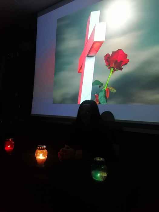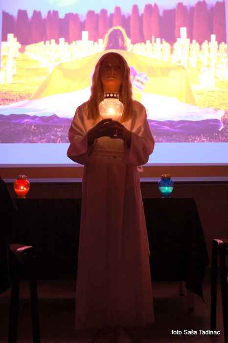 Nakon dramskog uvoda, u tami dvorane uz upaljene svijeće, uslijedilo je bolno i emotivno svjedočanstvo Sandra Rapčak Škomrlj, rođene vukovarke, koja je sa svojom obitelji zarobljena u Sotinu, a potom u logor u Negoslavcima. Tada djevojčica, prisustvovala je silovanju vlastite majke pod prijetnjom da će ju ubiti, vezanju djeda za tenk bodljikavom žicom nakon čega su ga vukli takvog cestom te zarobili u logor Begejci, fizičkom i psihičkom zlostavljanju od strane agresora – pripadnika JNA i domaćih pobunjenih Srba. Oca su joj zarobili, pretukli i odvezli u cestom kojom se nikada nije vratio.. ubili su ga, a do dana današnjeg njegovi posmrtni ostatci nisu pronađeni. Sandra je svjedočila o poslijeratnim godinama i potrazi za vlastitim ocem kao i drugim nestalim osobama, razgovorima sa agresorima kako bi dobila potrebne informacije, pokretanju tužbi za počinjeni ratni zločin i nazočnosti na suđenjima, obilascima na stotine masovnih i pojedinačnih grobnica, upornosti koju rijetki mogu podnijeti, sve kako bi došla do bolne istine o ubojici vlastitog oca, silovateljima majke. Dvoranu su ispunile suze svih okupljenih, a nakon svjedočanstva i upoznavanja s aktivnostima Udruge djece poginulih i nestalih hrvatskih branitelja Domovinskog rata uslijedilo je prikazivanje kratkog filma koji prikazuje strahote ratnih zbivanja u Vukovaru, uništen grad do temelja, agresore koji u smrt odvode Hrvate kao i pronalazak masovne grobnice na Ovčari te prikaz mimohoda „Vi ste naš ponos – mi smo Vaša snaga“ i prigodnog komemorativnog programa „Ovčara – vječna rana“ koje udruga 18. godinu po redu organizira u Vukovaru, 20. studenoga u sklopu obilježavanja Dana sjećanja na žrtvu Vukovara. Emotivan video kod svakog nazočnog pokrenuo je emocije, bolne suze i uzdahe koji su se čuli u tišini – podsjetnik na teške dane i gubitke koje je Hrvatska podnijela za svoju slobodu i neovisnost.